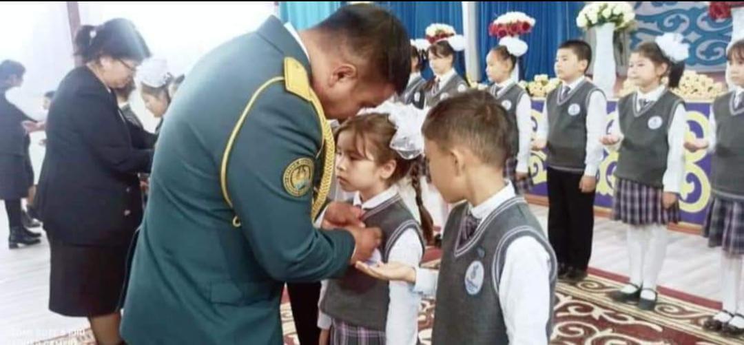 Badges were put on the young Kyranians, certificates of acceptance into the organization were given, school principal Ospanova Ulzhan Abidildayevna gave a congratulatory speech.